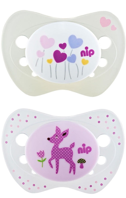 nip life - der kiefergerechte Beruhigungssauger für Babys ab 16 Monaten nip life - die fröhlich-bunte Schnullerserie für Zahngesundheit von Anfang an! Mit dieser neuentwickelten, zahnmedizinischen Schnullergeneration ist endlich Schluss mit möglichen Zahn- oder Kieferfehlbildungen. Immer die passende Größe! Das Größenkonzept orientiert sich am natürlichen Wachstum des Babys und ist somit perfekt an jede Phase der Zahn- und Kieferentwicklung angepasst. Größe 3 : für das Alter 16-32 Monate, die besonders weiche Saugerspitze schmiegt sich dabei perfekt an den sensiblen Gaumen des Babys. Produktvorteile : anatomisches weiches Saugteilaus Silikon kiefergerechte Form für eine gesunde Kieferentwicklung von Beginn an Kinnschutz verhindert Druckstellen und Hautreizungen am Kinnansatz große Ventilationslöcher sorgen für eine optimale Belüftung der zarten Babyhaut extra flacher Greifknopf für ein bequemes Saugen in jeder Position fröhlich bedruckte Schnullerscheibe Pfiffiges "Life?-Design erhältlich in der Größe 1-3 0% BPA Lieferumfang : preisgünstiges 2-er Set mit 2 Stk. Schnuller Serie Life girl Gr. 2 Motive : Herzen und Reh Mit nip Produkten verlassen Sie sich auf über 75 Jahre Entwicklungskompetenz des ältesten deutschen Herstellers von Babysaugern. Hier verschmelzen jahrzehntelange Erfahrung mit neuesten Erkenntnissen von Wissenschaftlern, Ärzten und Kiefernortopäden. nip - nur das Beste für Ihr Baby!